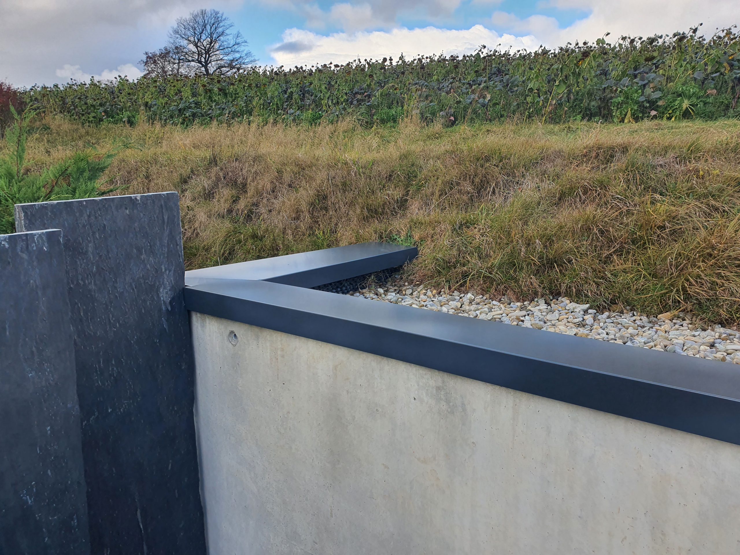 Unsere Mauerabdeckungen aus Blech kombinieren optimalen Witterungsschutz mit modernem Design. Sie bewahren Mauern dauerhaft vor Schäden und runden das Gesamtbild Ihres Gebäudes elegant ab.